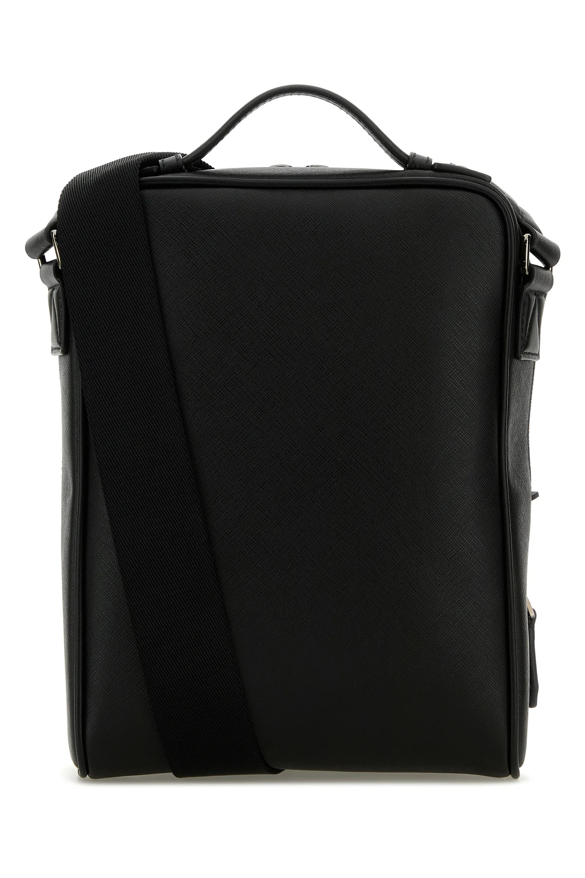 Borsa a tracolla realizzata in pelle zigrinata arricchita da logo in lettere metalliche sulla parte frontale.