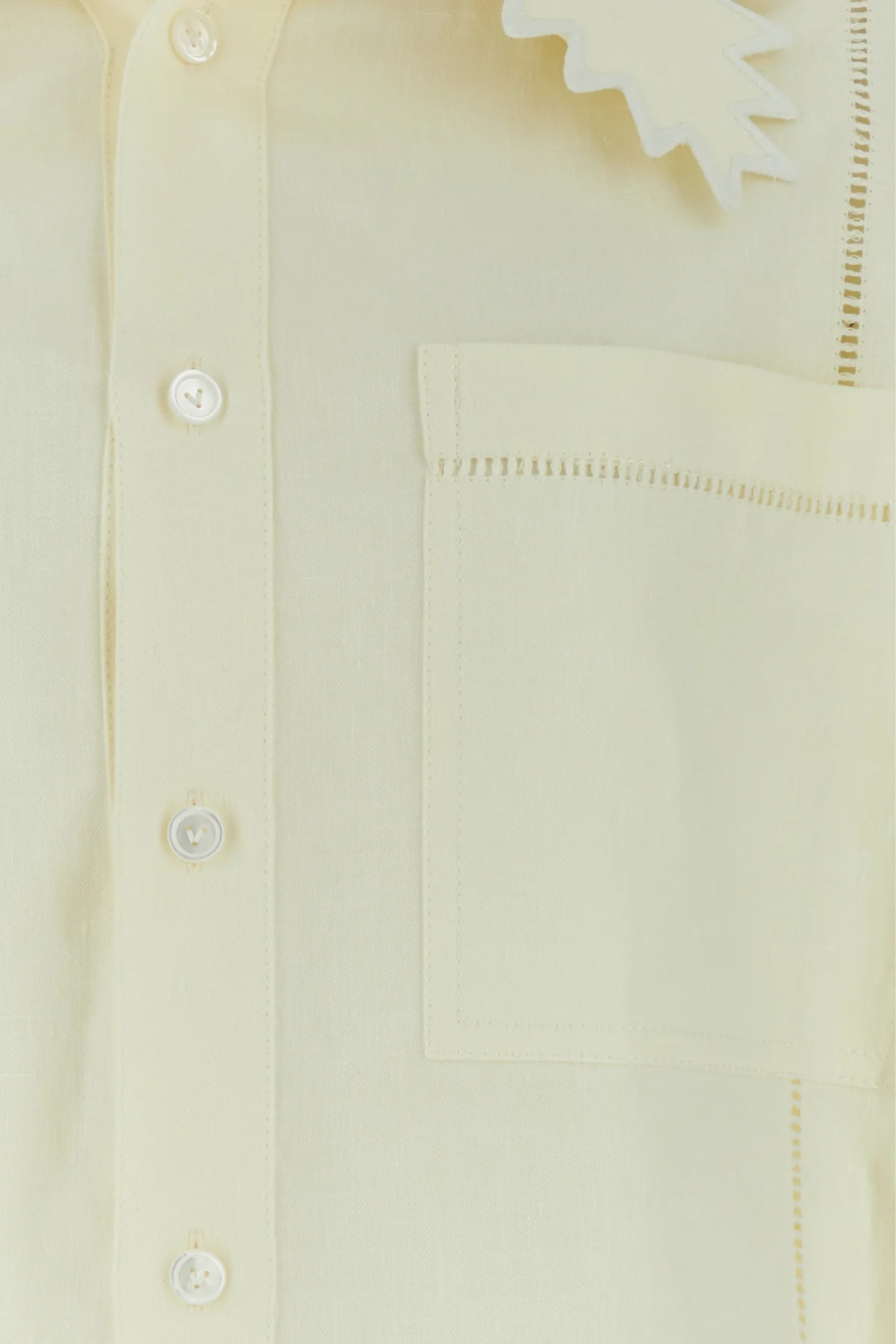 Camicia realizzata in puro lino caratterizzata da particolare ricamo su tutta la superficie.